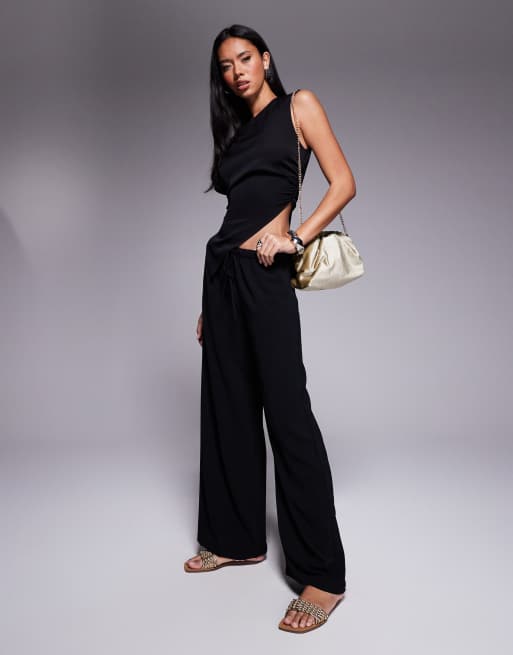 ASOS DESIGN - Pantaloni neri allacciati in vita in coordinato