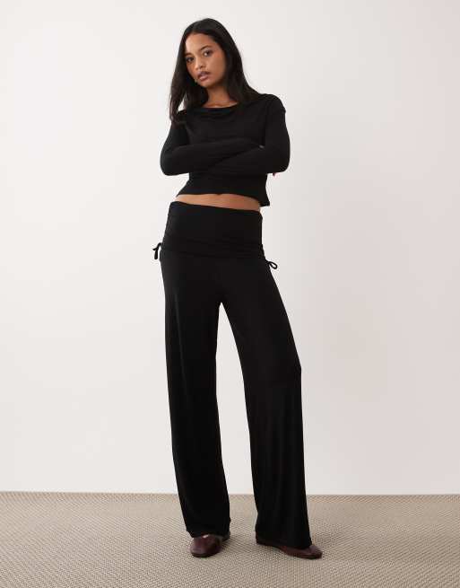 ASOS DESIGN - Pantaloni neri arricciati con risvolto sul retro in coordinato