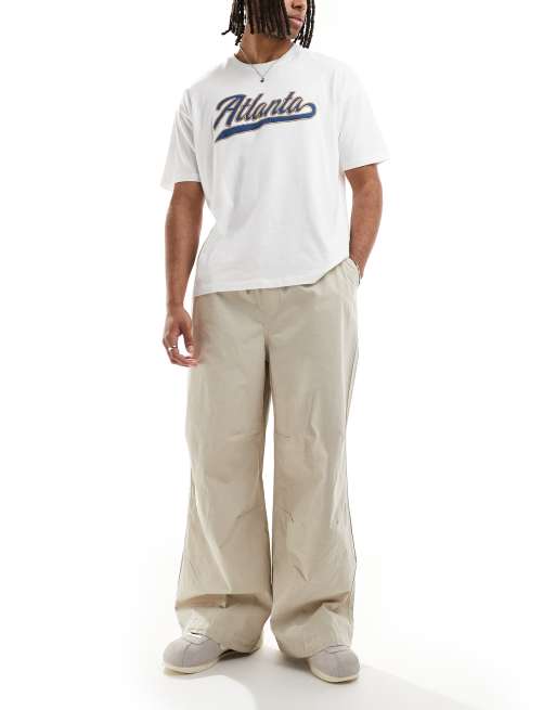 ASOS DESIGN - Pantaloni parachute in popeline color pietra