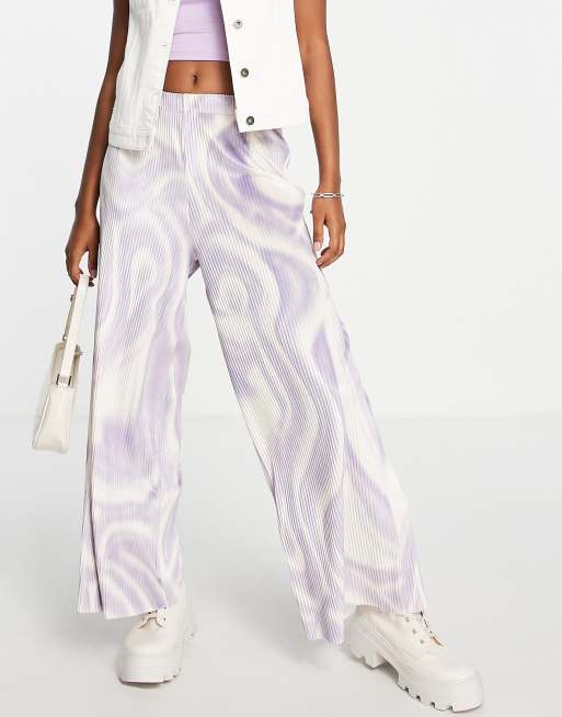 ASOS DESIGN - Pantaloni plissettati con fondo ampio in velour con stampa astratta lilla