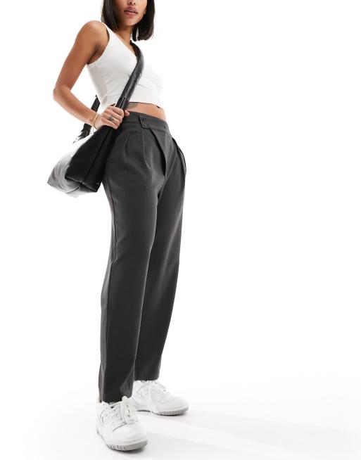 ASOS DESIGN - Pantaloni sartoriali affusolati antracite con vita asimmetrica