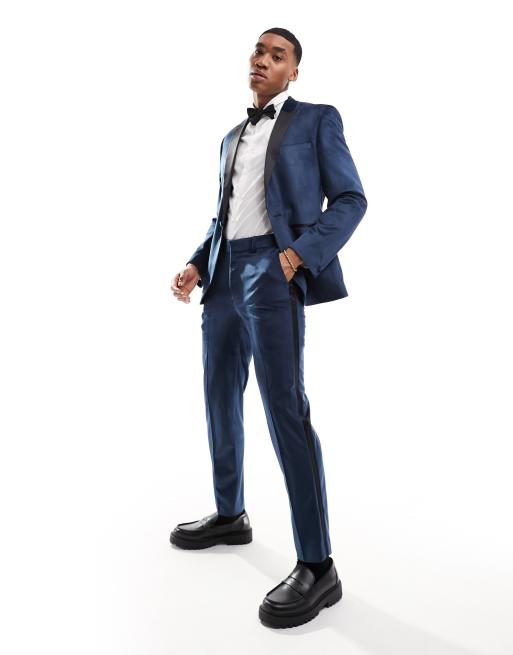 ASOS DESIGN - Pantaloni slim da smoking in velluto blu navy