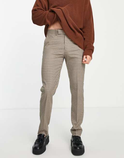 ASOS DESIGN - Pantaloni slim eleganti marrone a quadri piccoli
