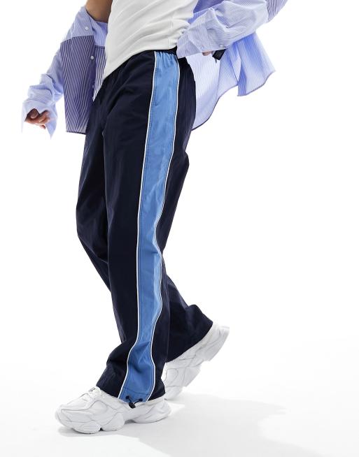 ASOS DESIGN - Pantaloni sportivi ampi in nylon blu navy con riga laterale blu