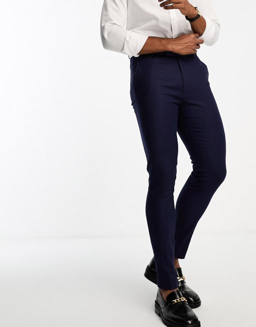 ASOS DESIGN - Pantaloni super skinny eleganti blu navy in misto lino