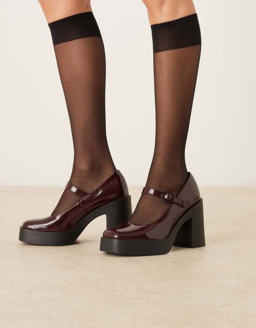 ASOS DESIGN - Peso - Scarpe Mary Jane con tacco alto in vernice bordeaux con plateau