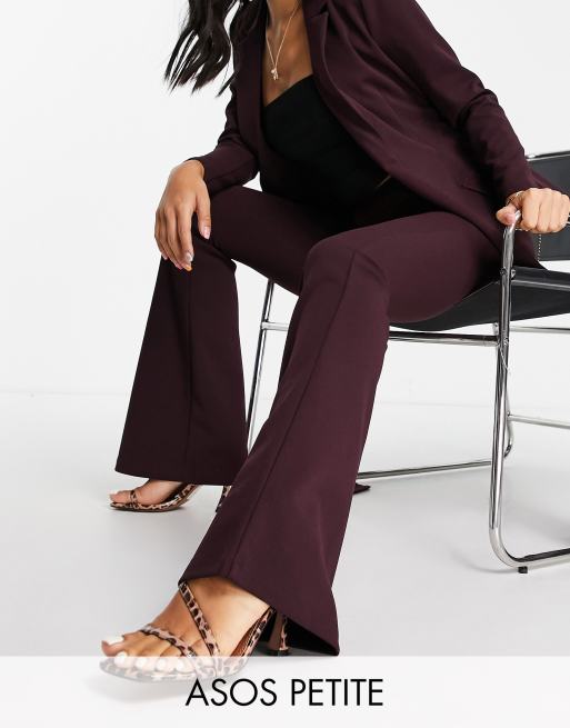 ASOS DESIGN Petite - Pantaloni a zampa da abito in jersey rosso vino