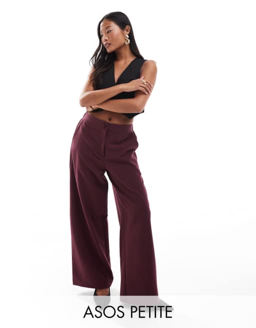 ASOS DESIGN Petite - Pantaloni sartoriali comodi dritti bordeaux