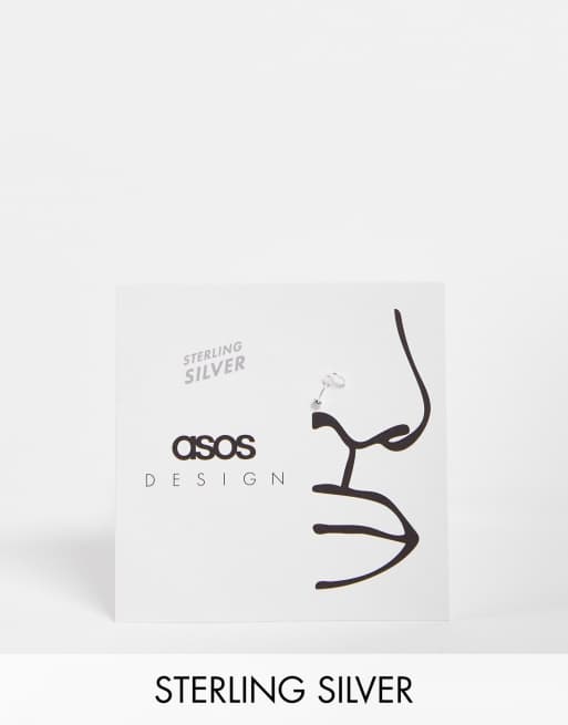 ASOS DESIGN - Piercing da naso in argento sterling con cristallo nero