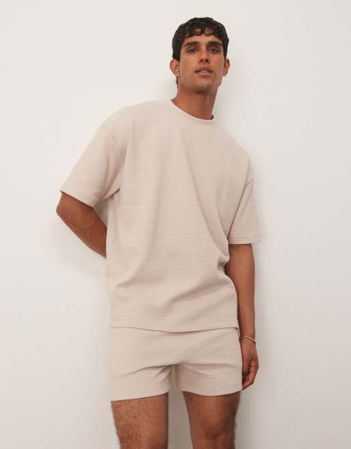 ASOS DESIGN - Pigiama in tessuto a nido d'ape beige