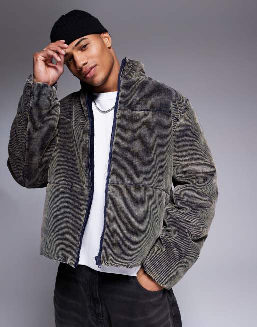 ASOS DESIGN - Piumino blu navy lavaggio acido a coste