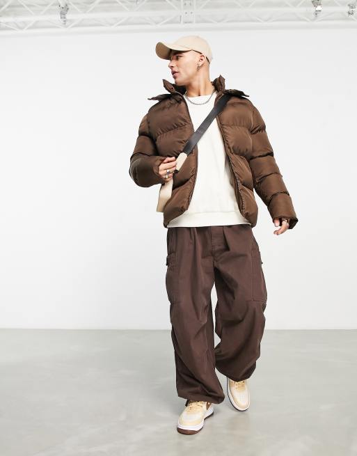 ASOS DESIGN - Piumino marrone con cappuccio rimovibile