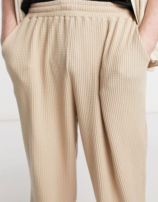 ASOS DESIGN Plus - Tuta sportiva oversize in piqué beige in coordinato