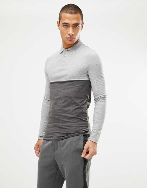 ASOS DESIGN - Polo attillata antracite mélange con carré a contrasto
