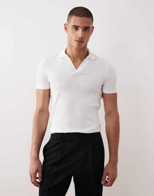 ASOS DESIGN - Polo attillata bianca testurizzata