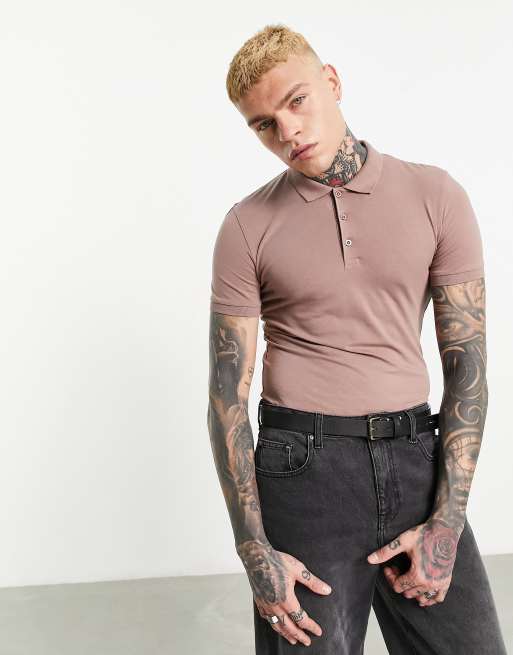 ASOS DESIGN - Polo attillata marrone slavato