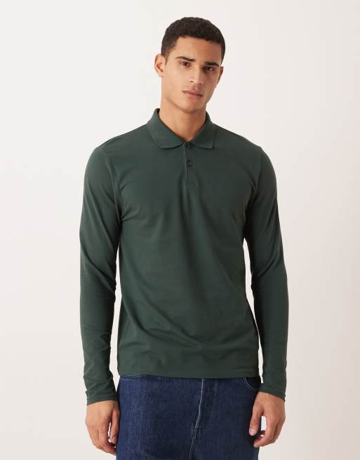 ASOS DESIGN - Polo basic a maniche lunghe in piqué verde regular fit