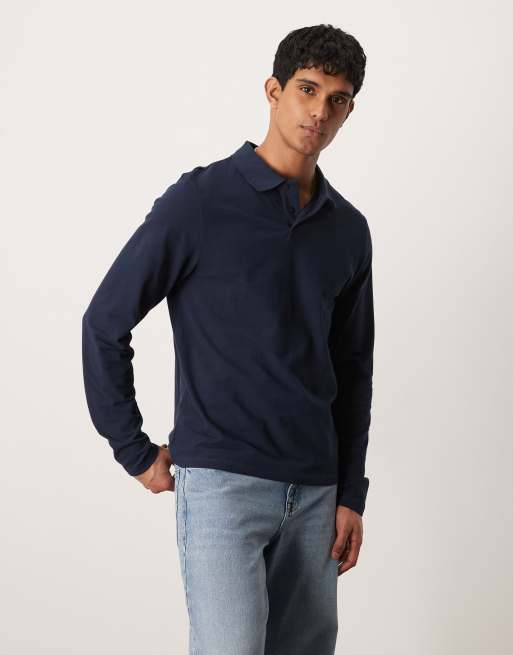 ASOS DESIGN - Polo basic in piqué blu navy a maniche lunghe