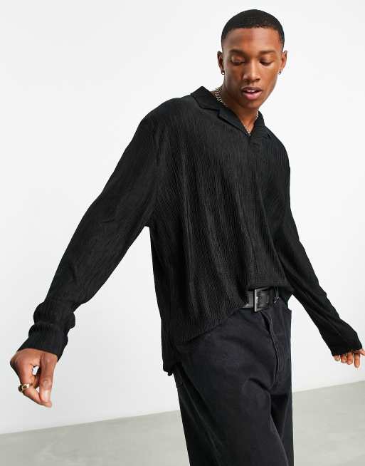 ASOS DESIGN - Polo comoda a maniche lunghe nera plissé con colletto con rever