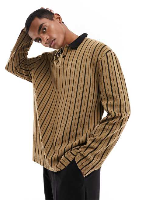 ASOS DESIGN - Polo comoda a maniche lunghe testurizzata a righe