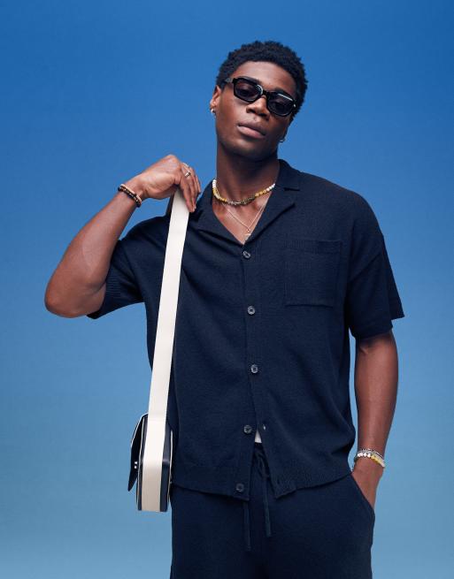 ASOS DESIGN - Polo con bottoni oversize leggera testurizzata nera in coordinato