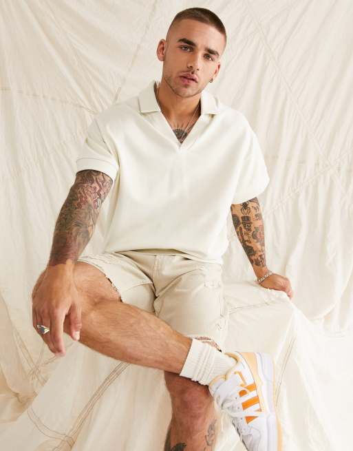 ASOS DESIGN - Polo felpata oversize beige a maniche corte