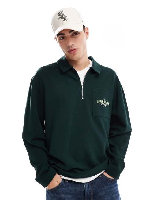 ASOS DESIGN - Polo in jersey testurizzato verde scuro con stampa sulla tasca