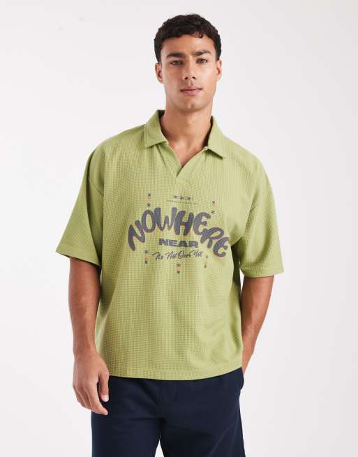 ASOS DESIGN - Polo oversize squadrata pesante verde testurizzata con scritta