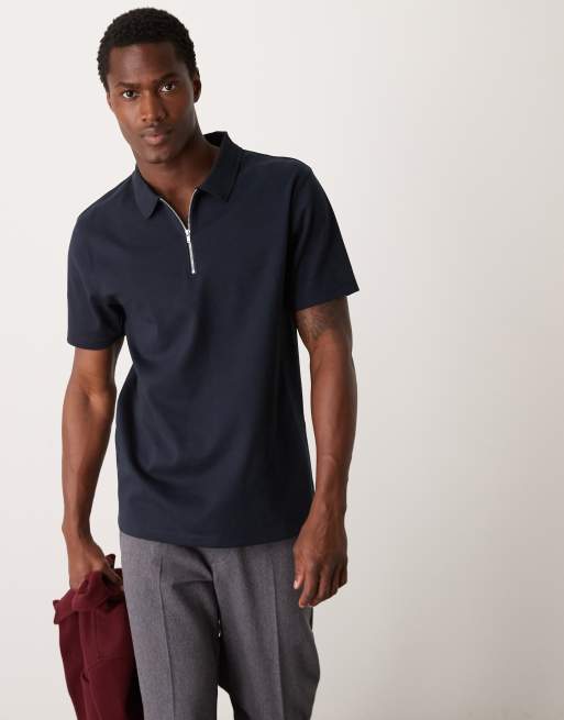 ASOS DESIGN - Polo premium in tessuto interlock blu navy