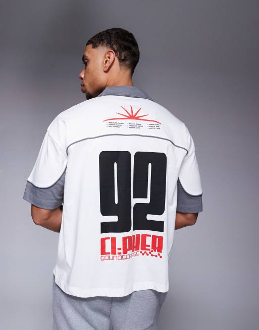 ASOS DESIGN - Polo squadrata a maniche corte marrone con stampa di città