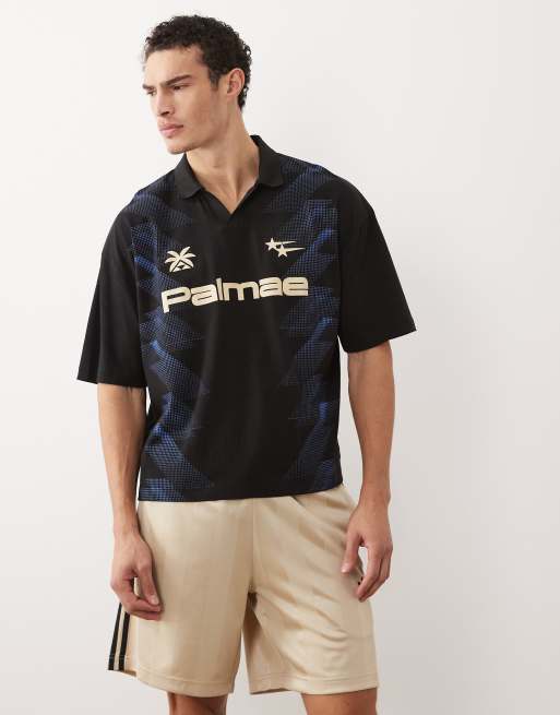 ASOS DESIGN - Polo squadrata oversize nera con grafica stile calcio .