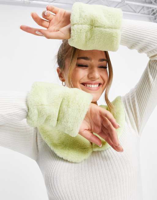 ASOS DESIGN - Polsini verdi in pelliccia sintetica