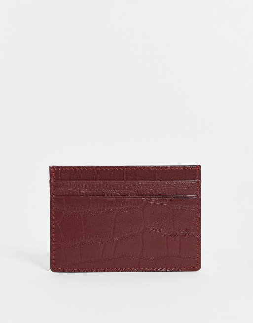 ASOS DESIGN - Portacarte in pelle bordeaux con motivo coccodrillo in rilievo
