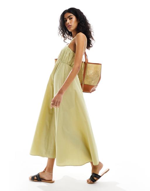 ASOS DESIGN - Prendisole lungo con bustino arricciato e spalline regolabili oliva