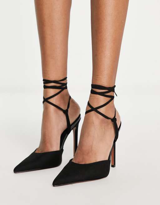 ASOS DESIGN - Prize - Scarpe nere con tacco alto allacciate sulla gamba