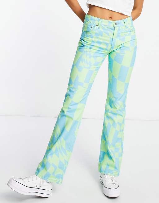 ASOS DESIGN - Puddle - Pantaloni a zampa con stampa a scacchiera psichedelica