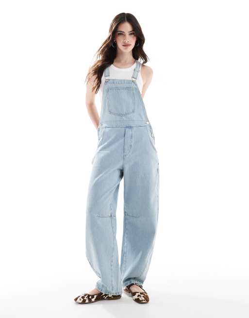 ASOS DESIGN - Salopette lavaggio chiaro con gamba bombata e abrasioni