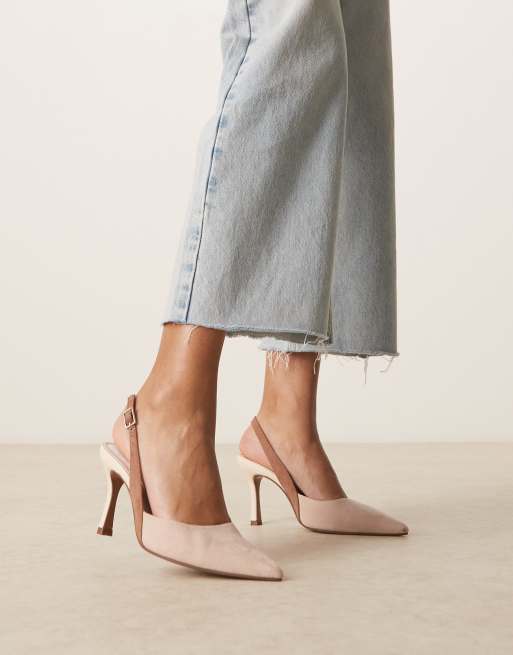ASOS DESIGN - Samber 2 - Scarpe con tacco a spillo e cinturino posteriore in camoscio sintetico beige e bianco sporco