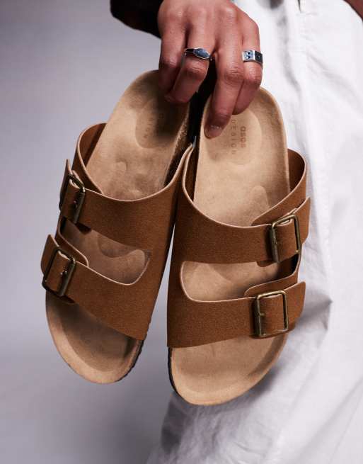 ASOS DESIGN - Sandali color cuoio con suola in sughero e doppie fascette