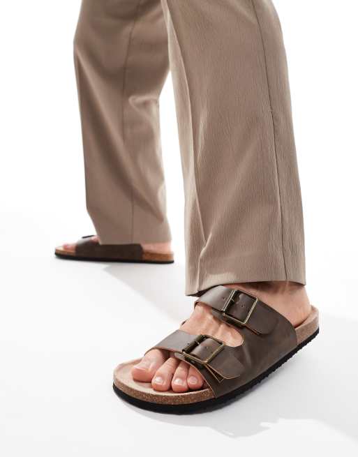 ASOS DESIGN - Sandali marroni in pelle nabuk oliata con fibbie