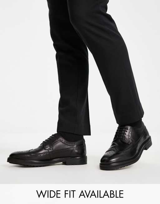 ASOS DESIGN - Scarpe brogue in pelle nera con suola spessa