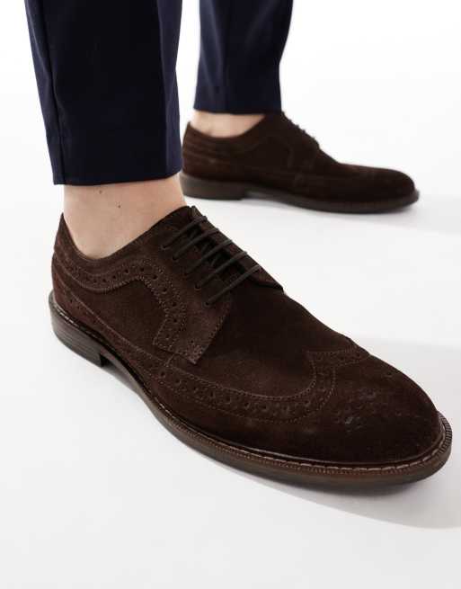 ASOS DESIGN - Scarpe brogue stringate in camoscio marrone scuro