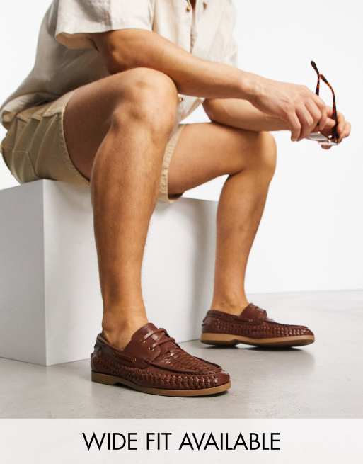 ASOS DESIGN - Scarpe da barca in pelle cuoio con design intrecciato