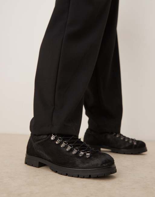 ASOS DESIGN - Scarpe da trekking premium stringate nere in cavallino