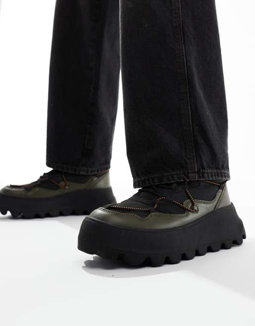 ASOS DESIGN - Scarponcini da trekking stringati kaki con suola spessa