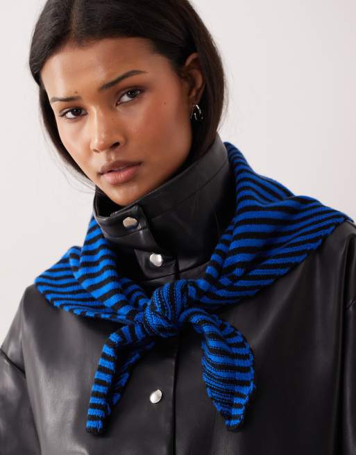 ASOS DESIGN - Sciarpa a triangolo in maglia blu a righe