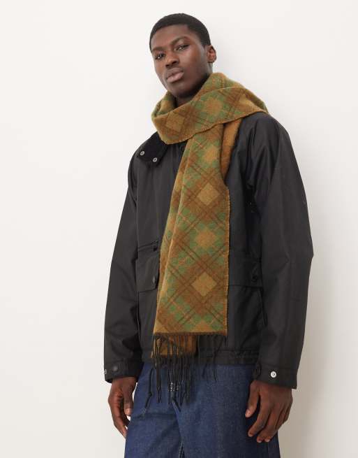 ASOS DESIGN - Sciarpa premium verde in lana con motivo a rombi