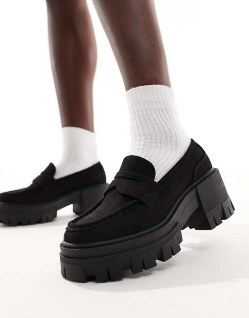 ASOS DESIGN - Script - Mocassini neri con suola spessa e tacco medio