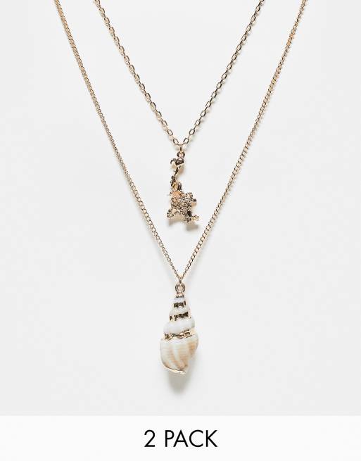 ASOS DESIGN - Set di 2 collane dorate con conchiglia sintetica e ciondolo