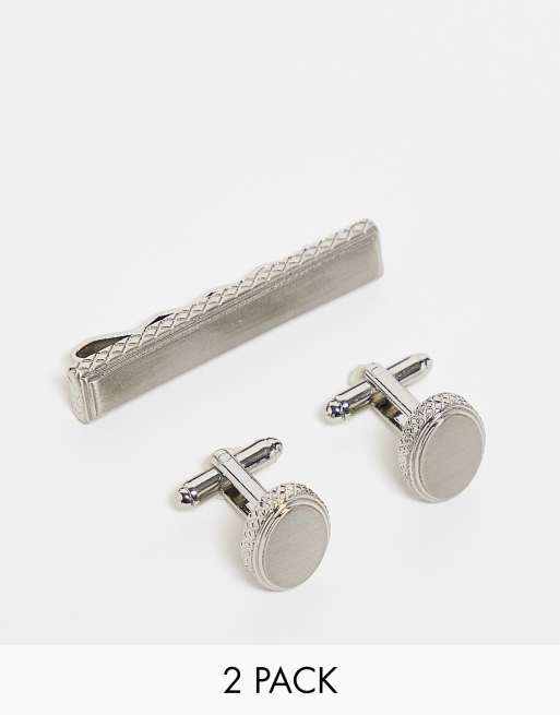 ASOS DESIGN - Set fermacravatta e gemelli con incisioni color argento